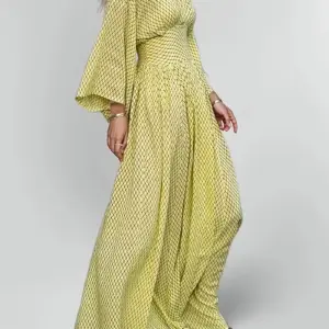 Women’s Elegant Geometric Print V-Neck Long Sleeve Maxi Dress